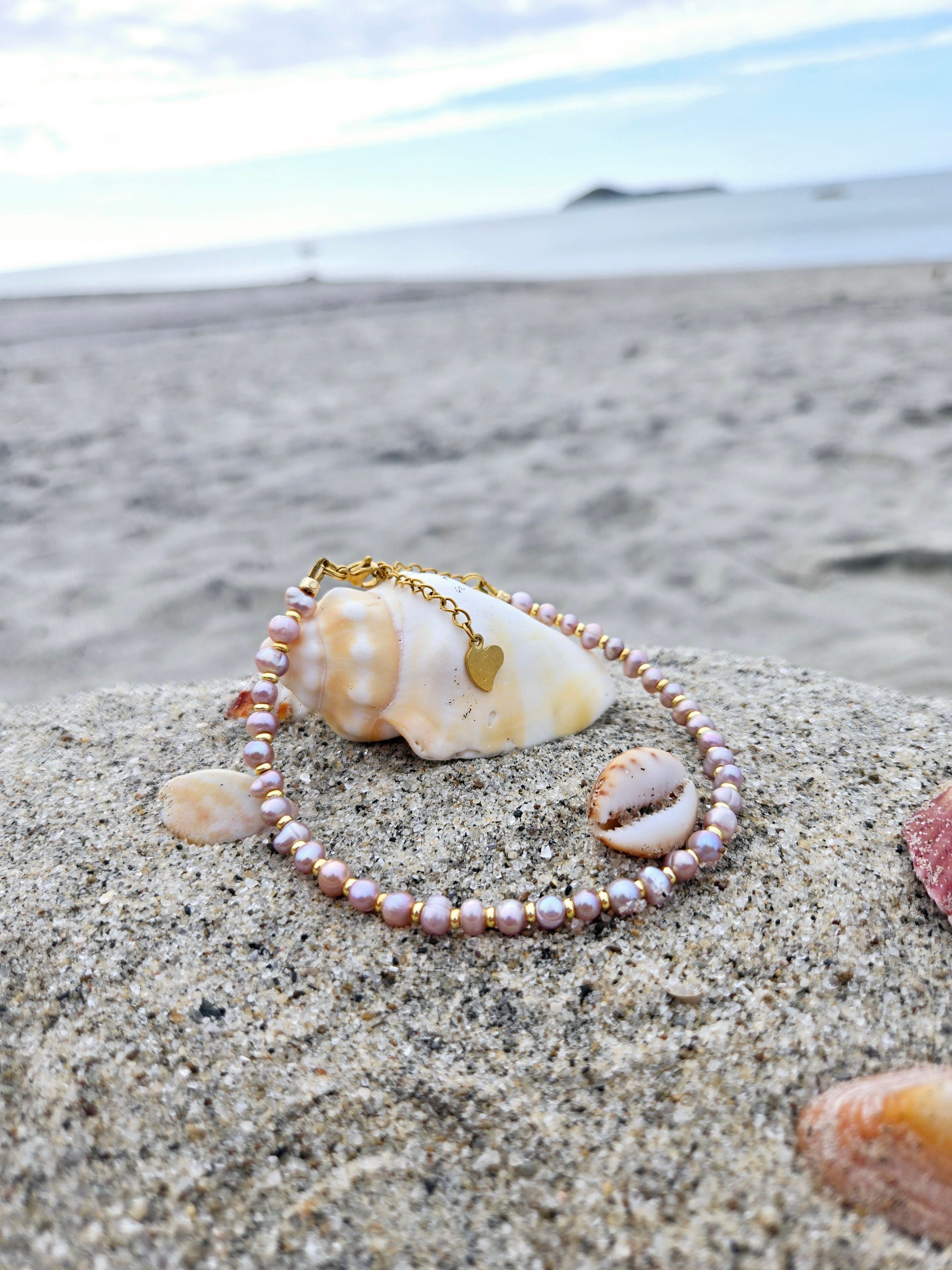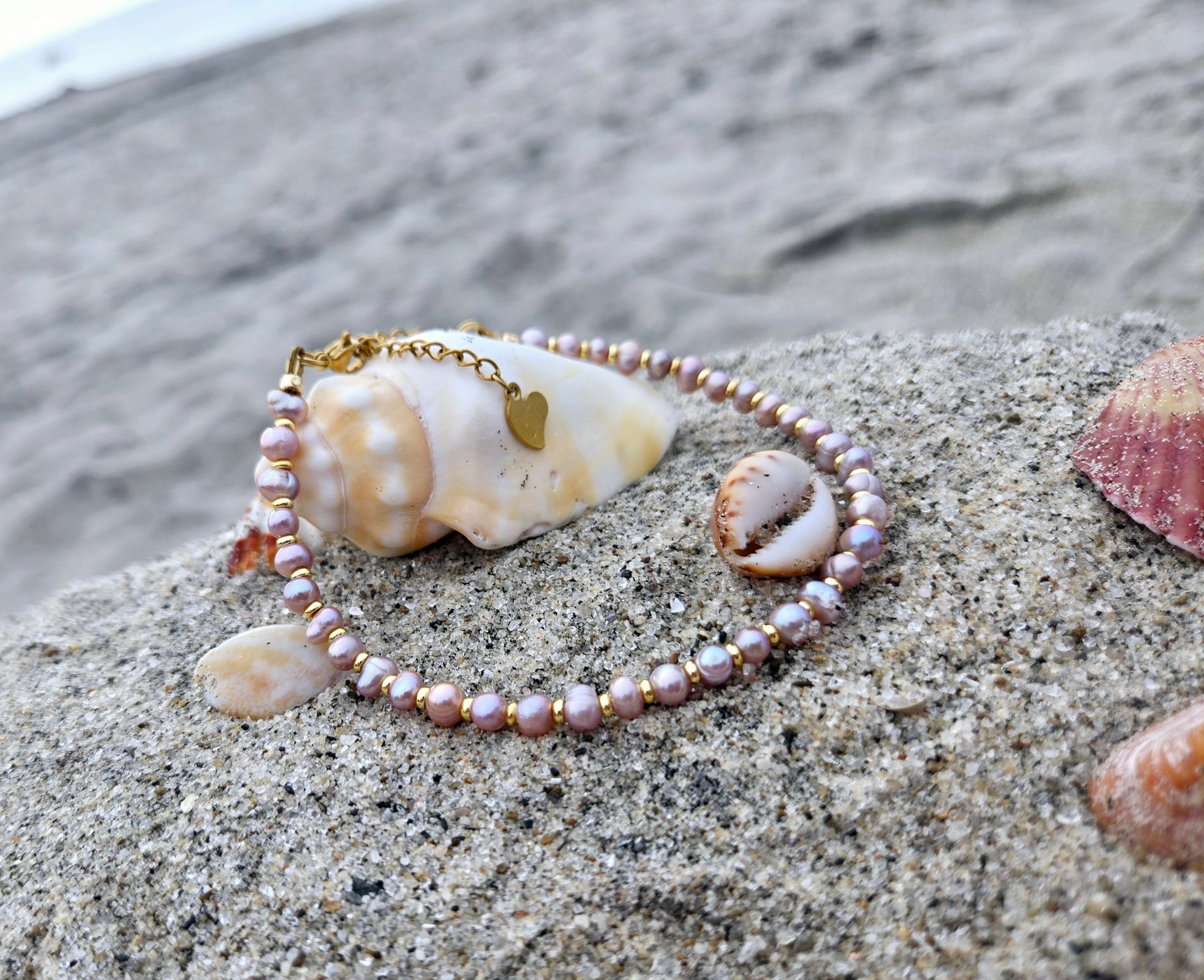 Bracelet de cheville perle d'eau douce Rose/Orangé