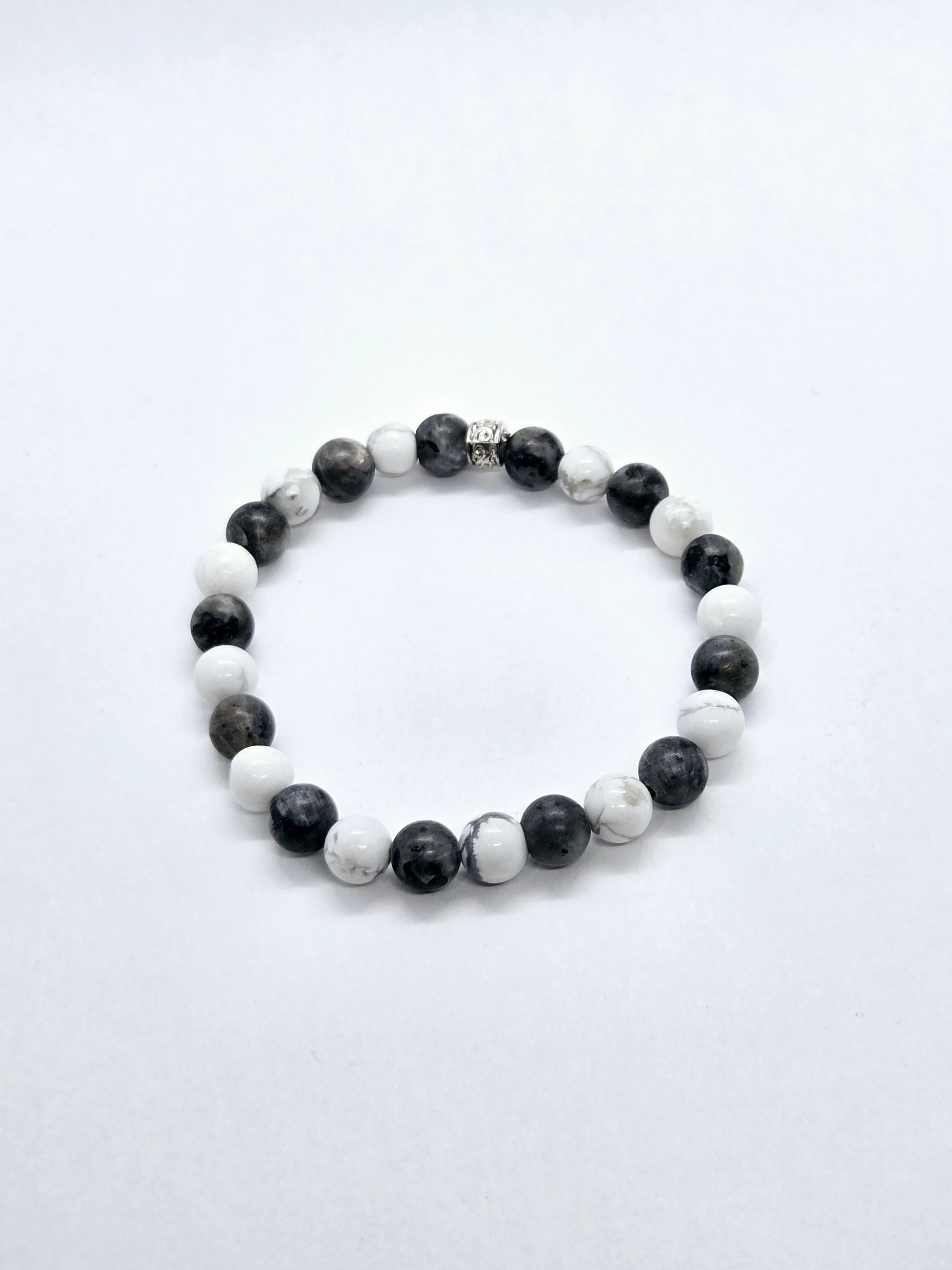 Il est composé de perles de pierres naturelles de labradorite et de howlite.