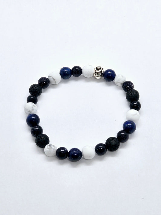 Prix habituel $18.00 CADPrix habituelPrix unitaire parPrix soldé $18.00 CADIl est composé de perles de pierres naturelles de pierre de lave, de howlite, de Lapis-Lazuli et de pierre de sable. Taille: 6,5 Inch Fabriqué artisanale au Québec. De plus,... -