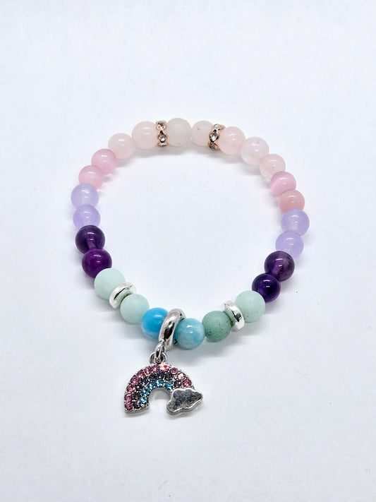 Prix habituel $18.00 CADPrix habituelPrix unitaire parPrix soldé $18.00 CADCe bracelet enfant arbore un adorable arc en ciel. Il est composé de perles de pierres naturelles d'amazonite , d'aigue marine, quartz , améthyste, oeil de chat et de soushan.... -