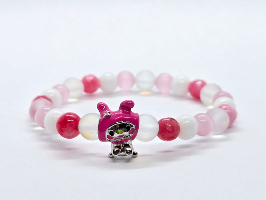 Prix habituel $18.00 CADPrix habituelPrix unitaire parPrix soldé $18.00 CADCe bracelet enfant arbore un adorable bonhomme rose. Composé de perles de pierres naturelles d'agate et de calcédoine. Taille: 6,5 Inch Fabriqué artisanale au Québec. De plus, pour chaque achat,... -
