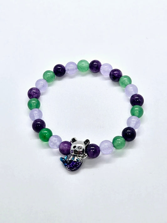 Prix habituel $18.00 CADPrix habituelPrix unitaire parPrix soldé $18.00 CADCe bracelet enfant arbore un adorable chat sirène. Composé de perles de pierres naturelles de jade et d'améthyste. Fabriqué artisanale au Québe. De plus, pour chaque achat, 2$ sont remis... -