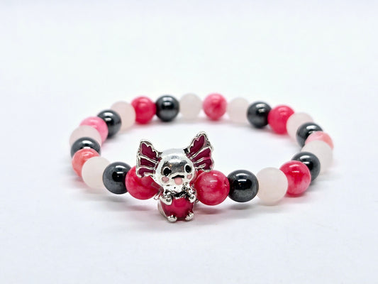 Prix habituel $18.00 CADPrix habituelPrix unitaire parPrix soldé $18.00 CADCe bracelet enfant arbore un adorable petit dragon. Il est composé de perles de pierres naturelles de calcédoine, d'hématite et de quartz rose. Taille: 6,5 Inch Fabriqué artisanale au Québec.... -