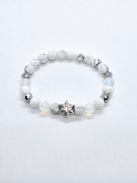 Prix habituel $18.00 CADPrix habituelPrix unitaire parPrix soldé $18.00 CADCe bracelet enfant arbore une adorable Etoile. Composé de perles de pierres naturelles de howlite, de christal et d'hématite. Existe en taille adulte ! Taille: 6,5 Inch Fabriqué artisanale au... -