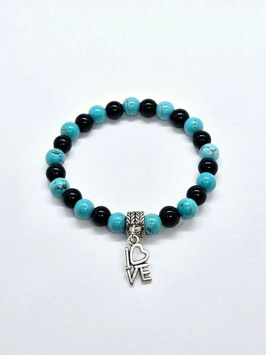 Prix habituel $18.00 CADPrix habituelPrix unitaire parPrix soldé $18.00 CADCe bracelet enfant arbore un adorable charm Love. Composé de perles de pierres naturelles de Howlite et d'agate. Taille: 6,5 Inch Fabriqué artisanale au Québec. De plus, pour chaque achat,... -