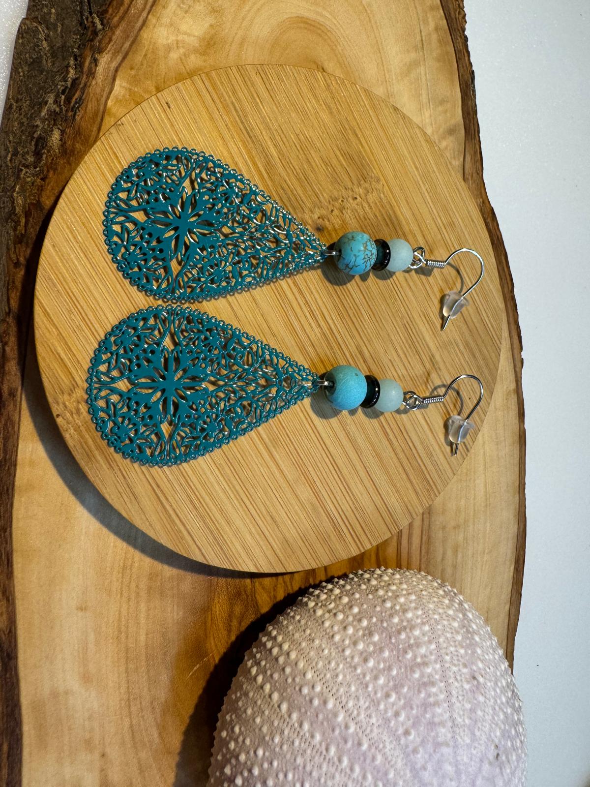 Earrings made of natural stone pearls of Howlite and Amazonite.