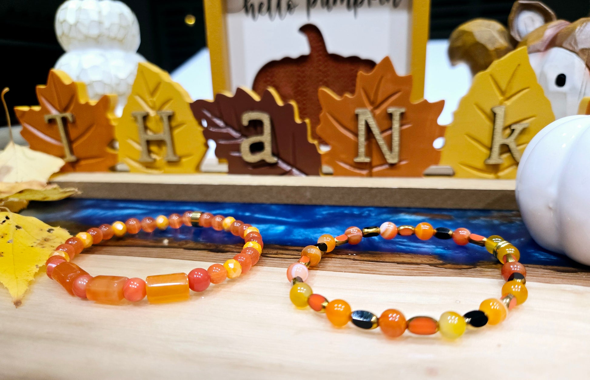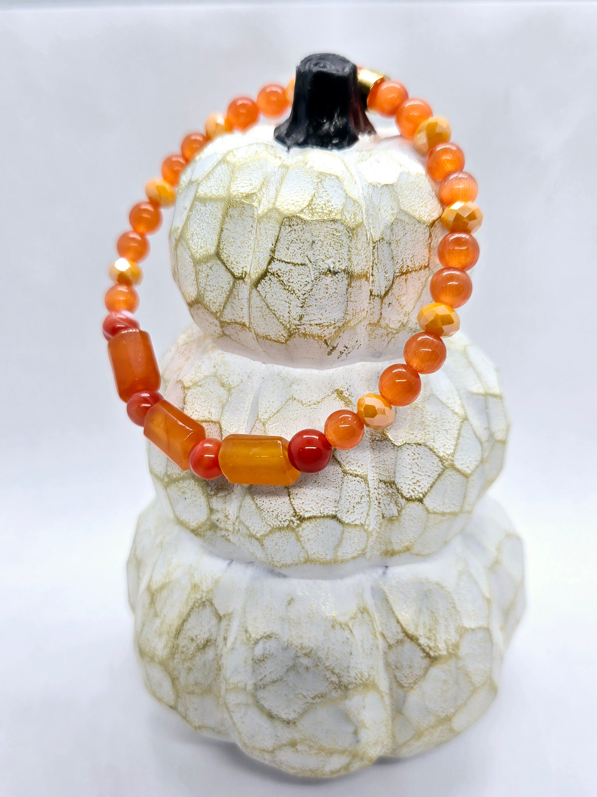 Bracelet made of natural stone beads of orange agate and cat's eye.