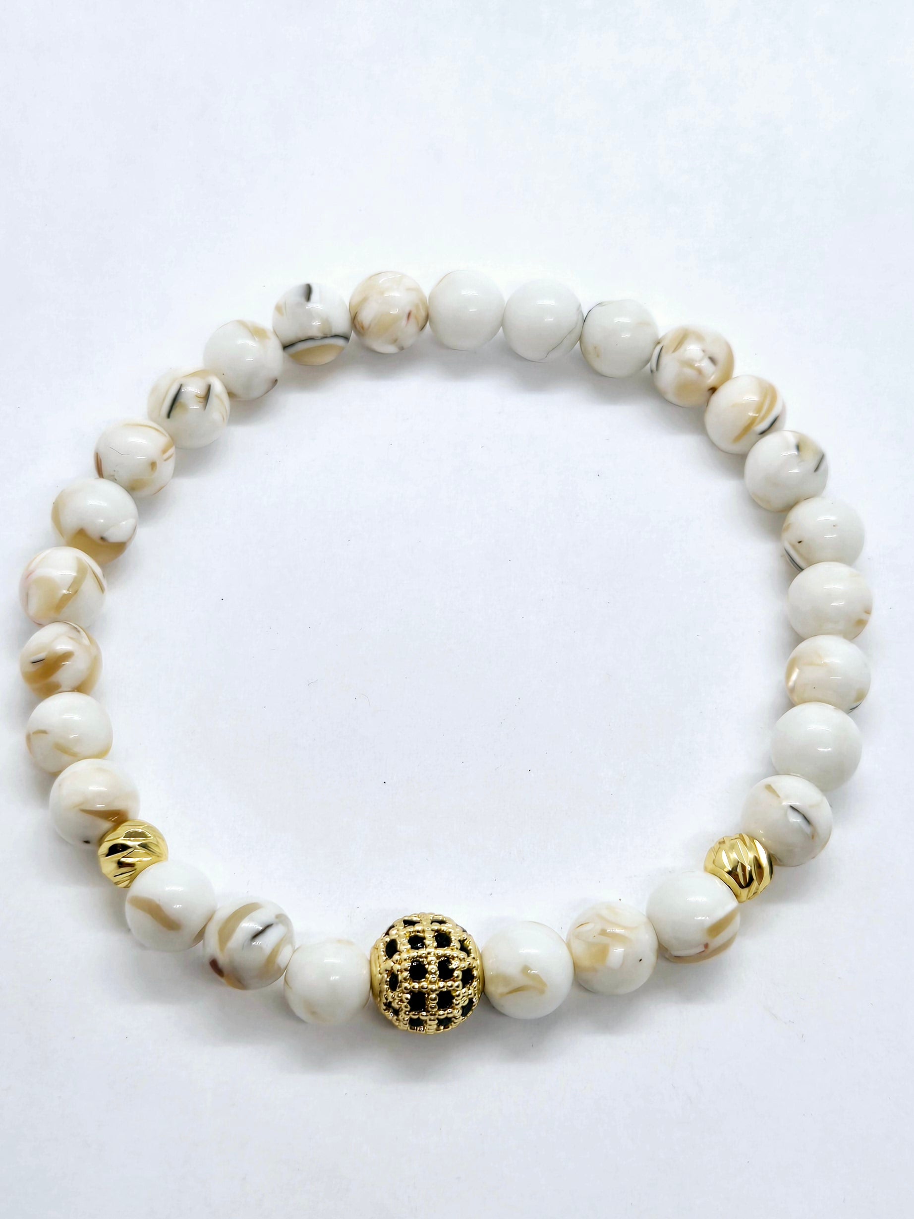 Spread your charm with our "Pureté" bracelet, featuring white Howlite stones to bring tranquility to your mind. In addition to its radiant beauty, this stone symbolizes inner peace and serenity. Treat yourself to a touch of calm with this bracelet.