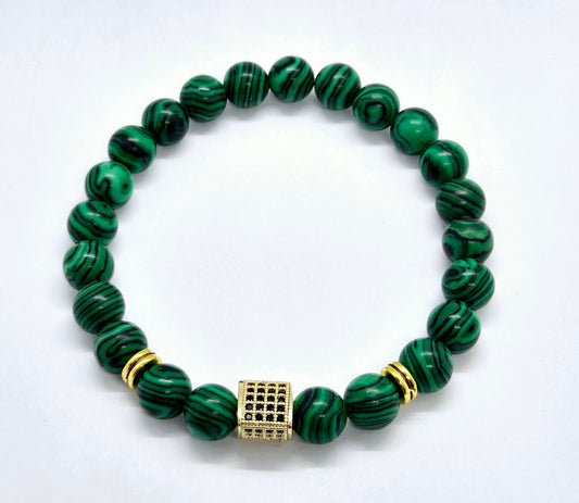 Regular price $24.00 CADRegular priceUnit price bySale price $24.00 CAD8mm natural stone bead bracelet composed of malachite beads. Size 19cm, 7'5 Inch Handmade here in Quebec For each piece of jewelry sold, $2 donated to the Charles Bruneau Foundation. ... -
