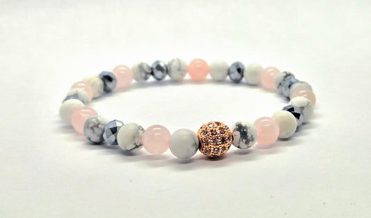 Regular price $24.00 CADRegular priceUnit price bySale price $24.00 CADNatural stone bead bracelet made here in Quebec. ComDiscover our bracelet, made here in Quebec with care and passion. Composed of natural rose quartz and howlite beads, it embodies elegance... -