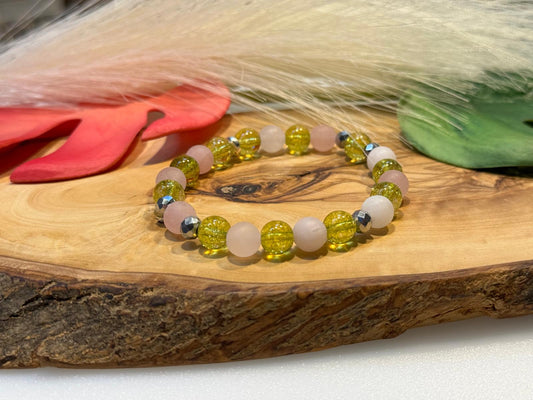 Regular price $24.00 CADRegular priceUnit price bySale price $24.00 CADNatural stone bead bracelet composed of: - Quartz rose - Peridot Size 19 cm, 7.5 Inch 6mm beads Also available in 8 mm beads.