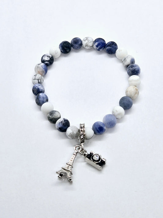Regular price $18.00 CADRegular priceUnit price bySale price $18.00 CAD✨ Child Bracelet Eiffel Tower ✨ In natural stones of sodalite And white howlite, this bracelet is much more than just a piece of jewelry! 💙🤍 🔹 Sodalite :... -
