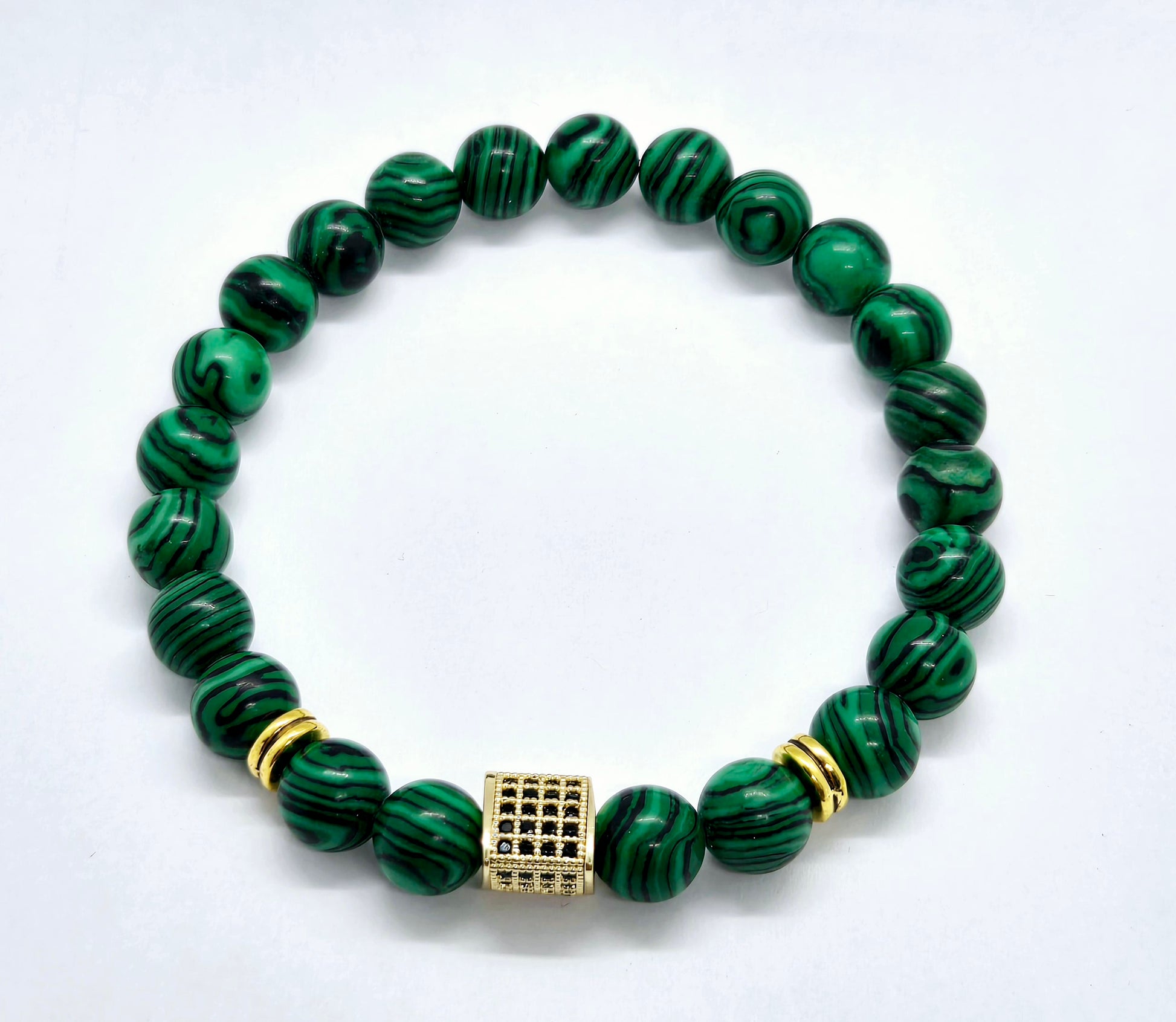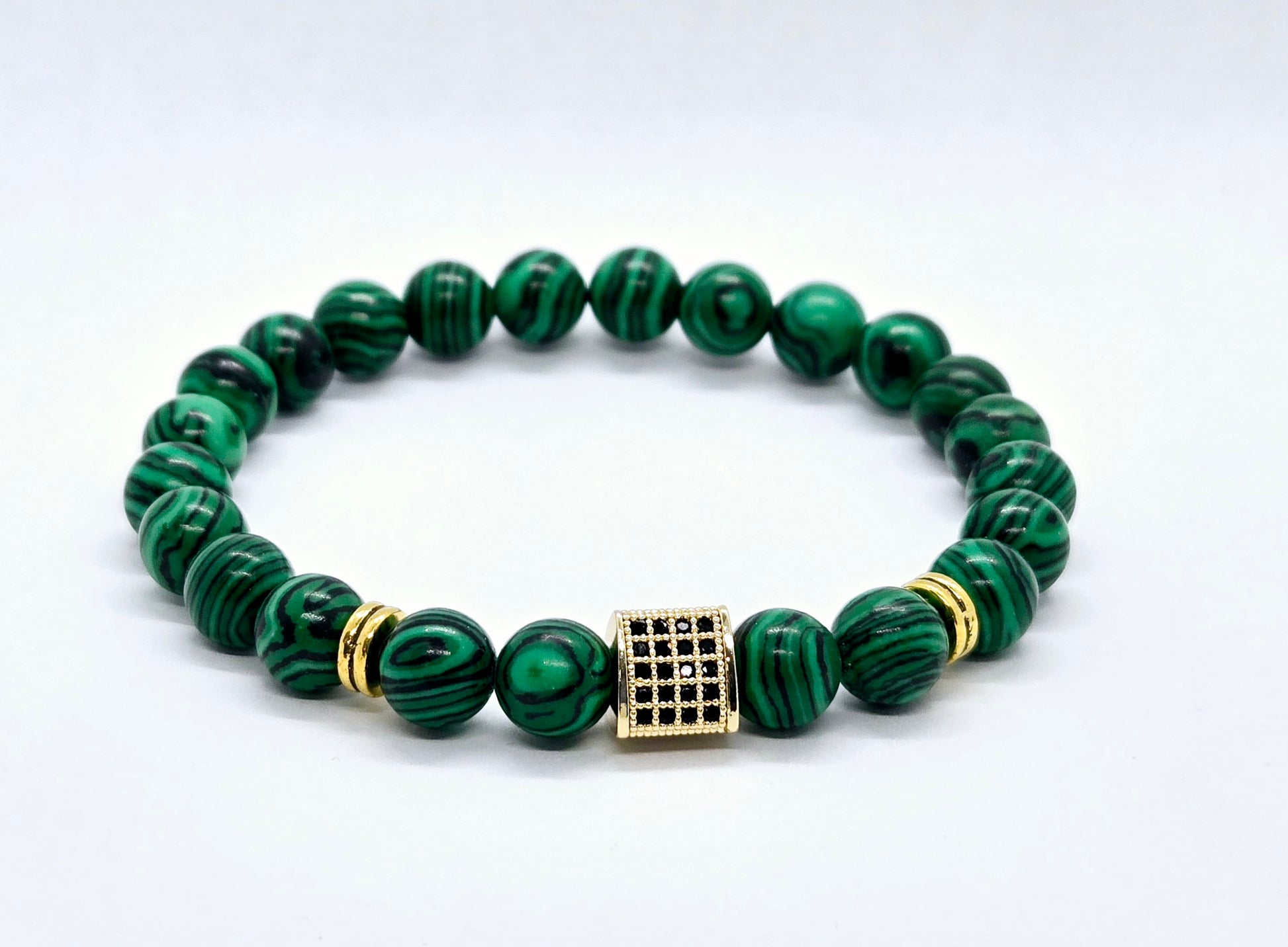 8mm natural stone bead bracelet composed of malachite beads.