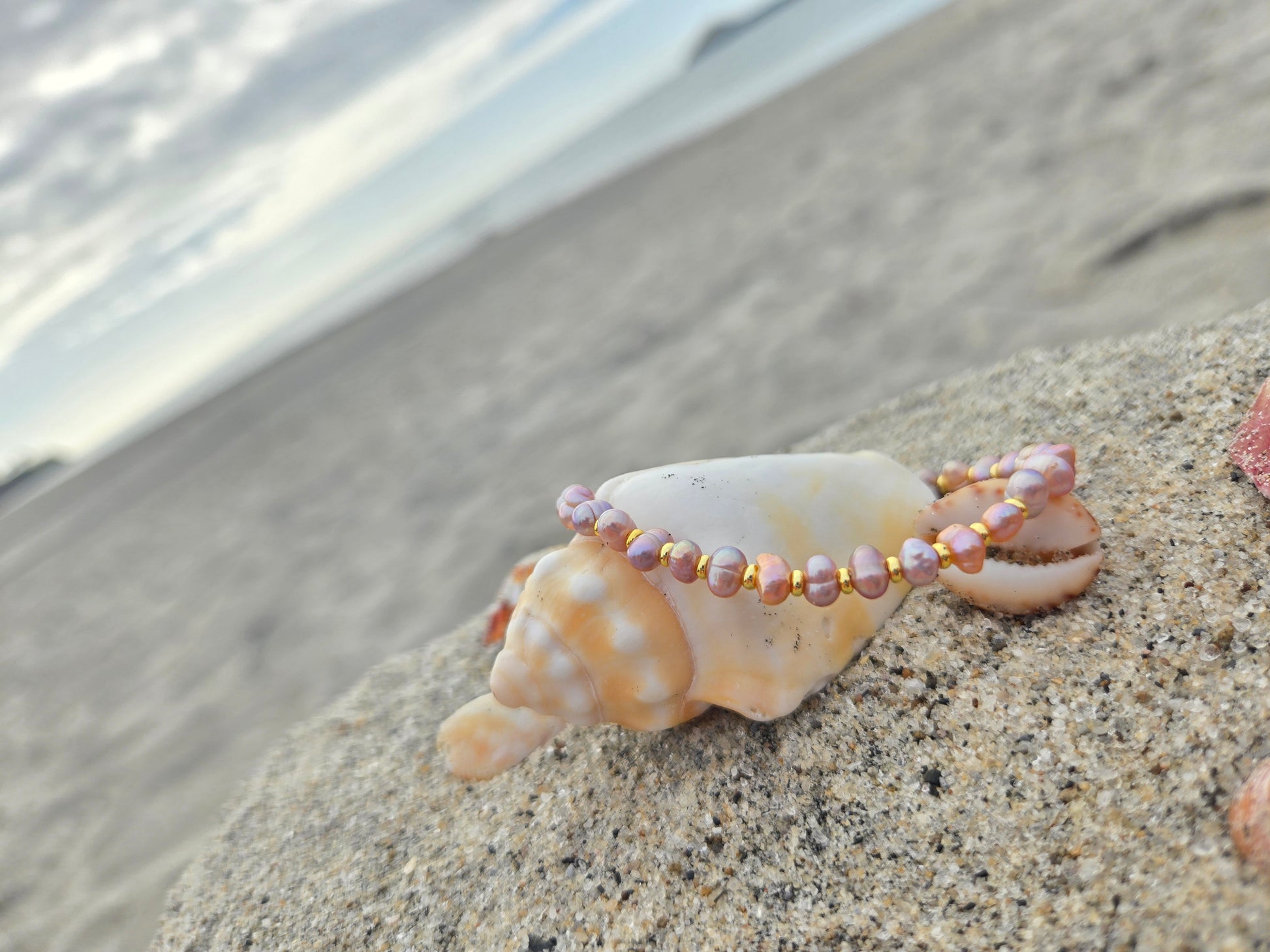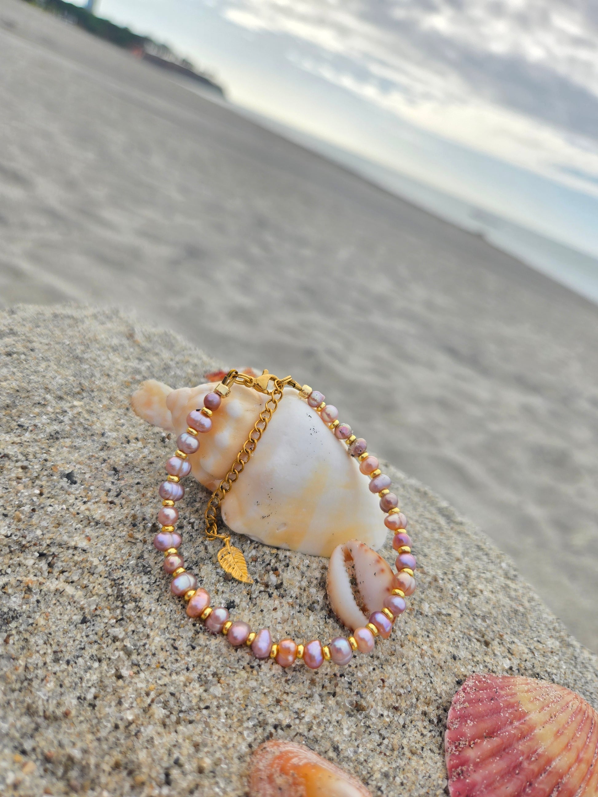 Discover our pink/orange freshwater pearl bracelet. Its stainless steel clasp ensures a perfect fit, while the delicate shine of the pearls adds a touch of timeless sophistication.