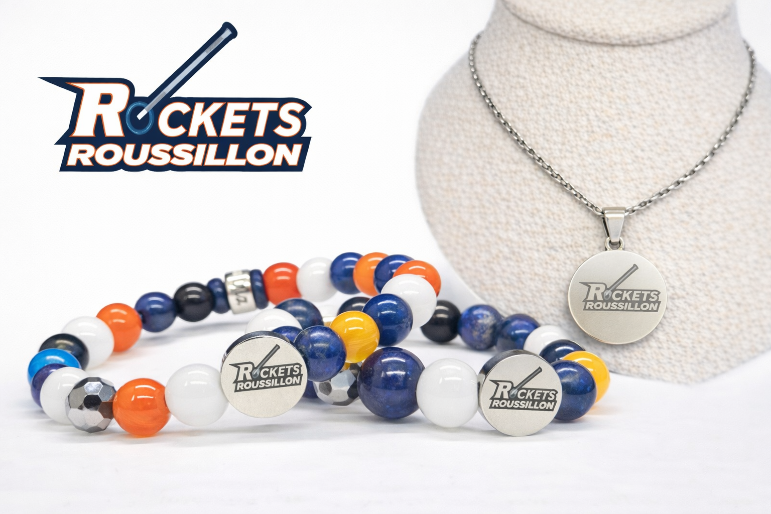 Collier ou bracelet gravé au logo des Rockets de Roussillon en acier inoxydable.