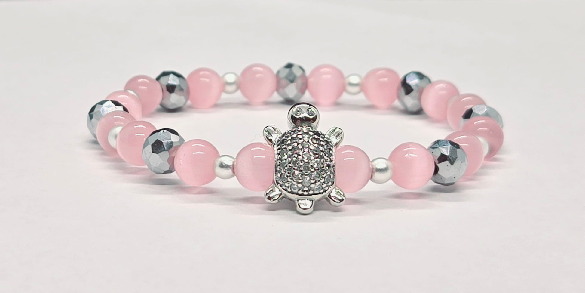 Il est composé de perles de pierres naturelles d'oeil de chat et d'hématite.