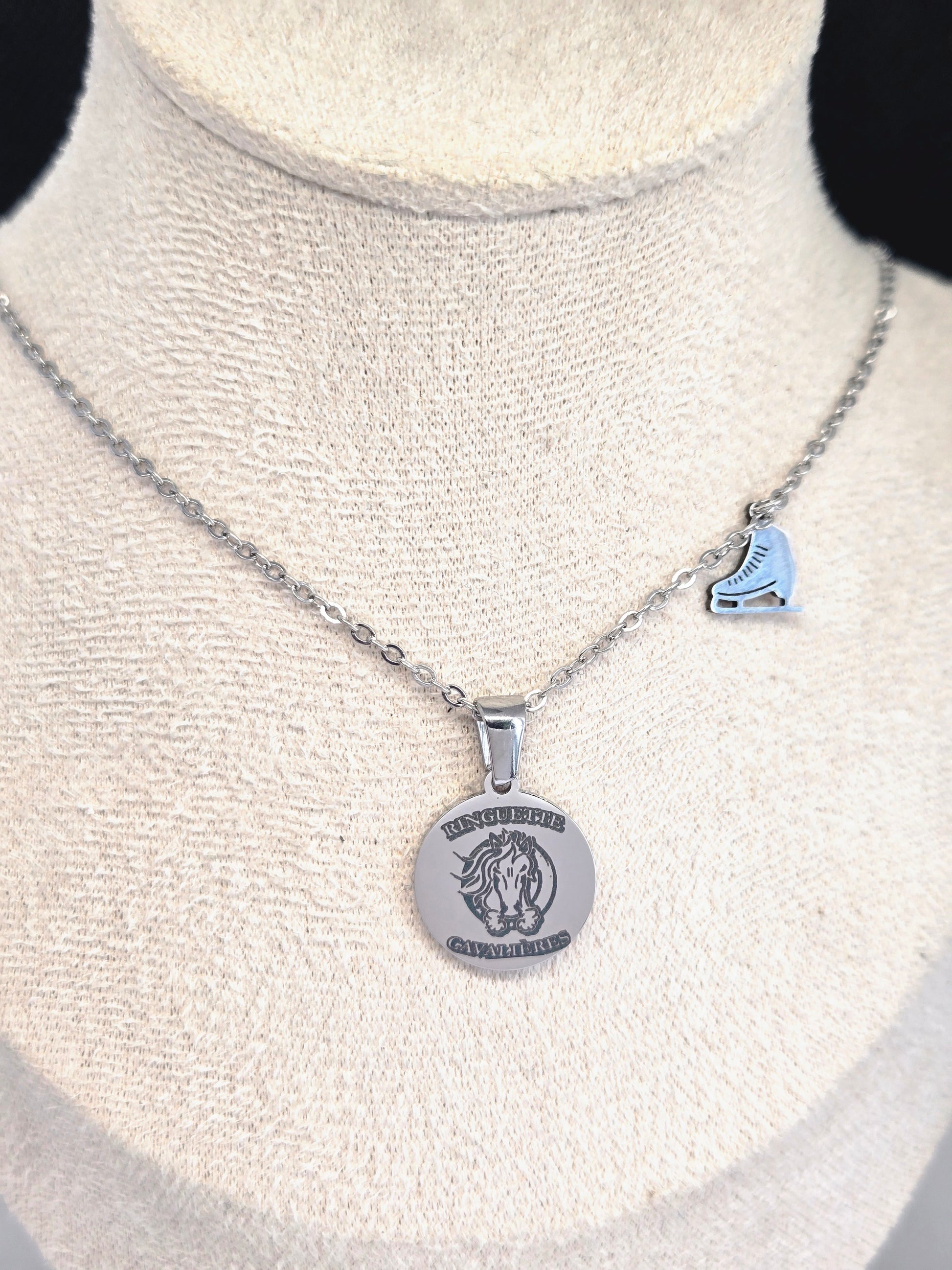 Collier graver au logo de l'équipe des Cavalieres en acier inoxydable.