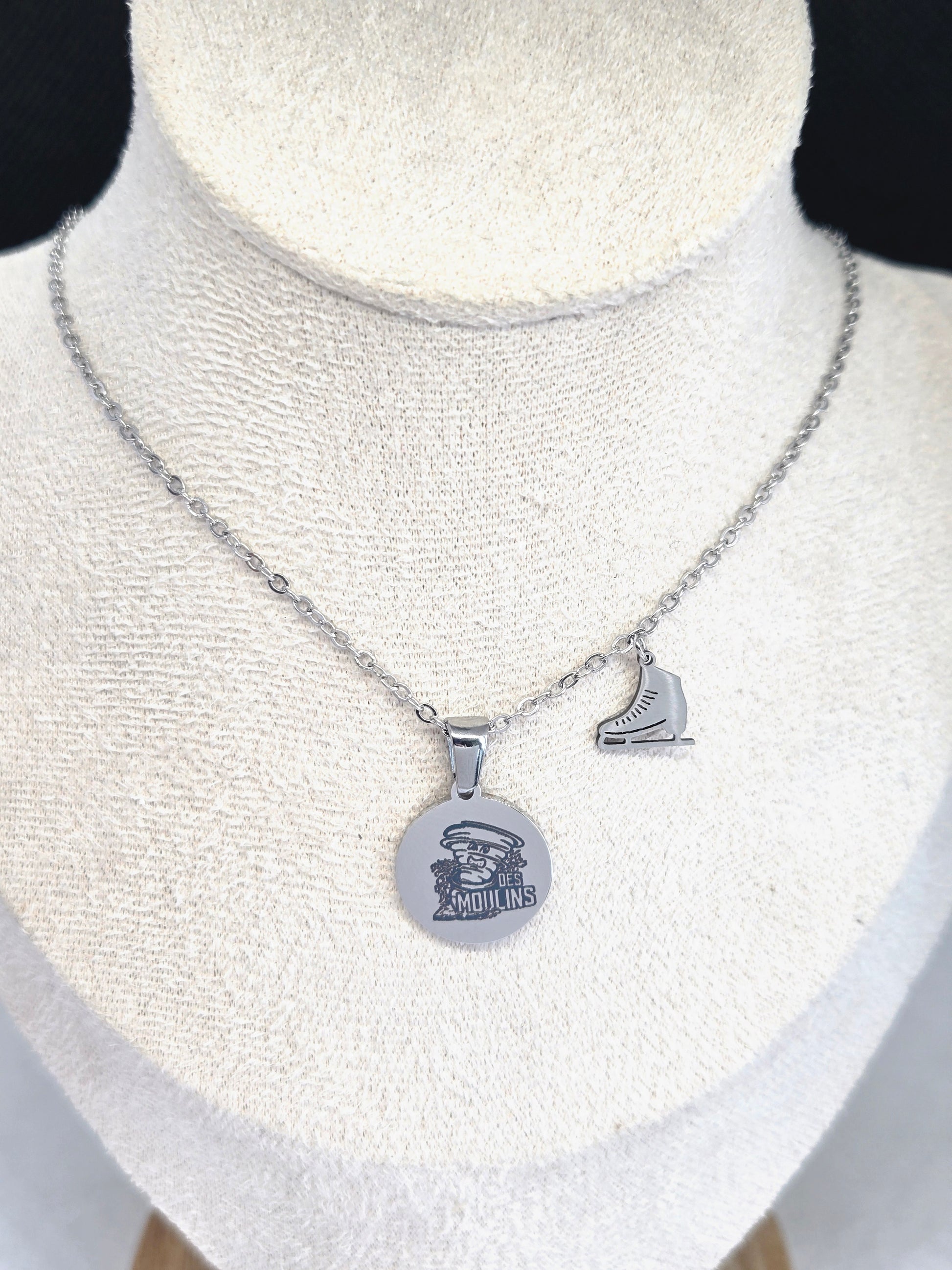 Collier graver au logo de l'équipe des moulins acier inoxydable.