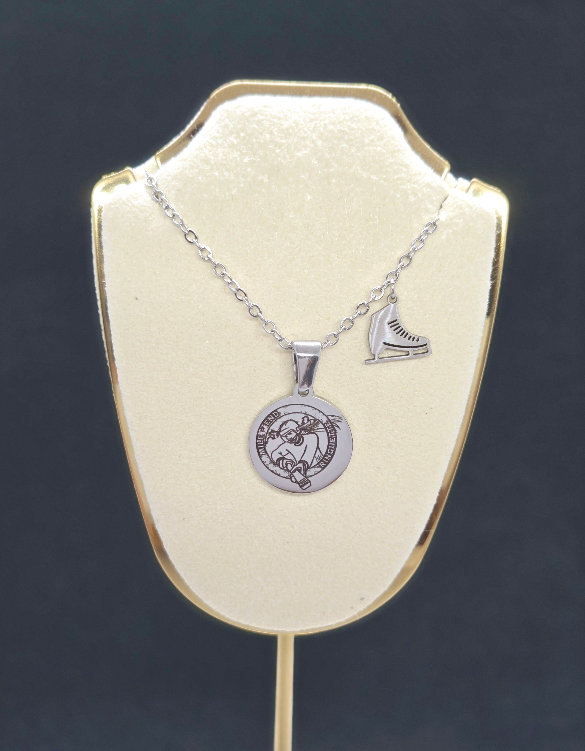 Collier graver au logo de l'équipe de Mile End Ringuette en acier inoxydable.